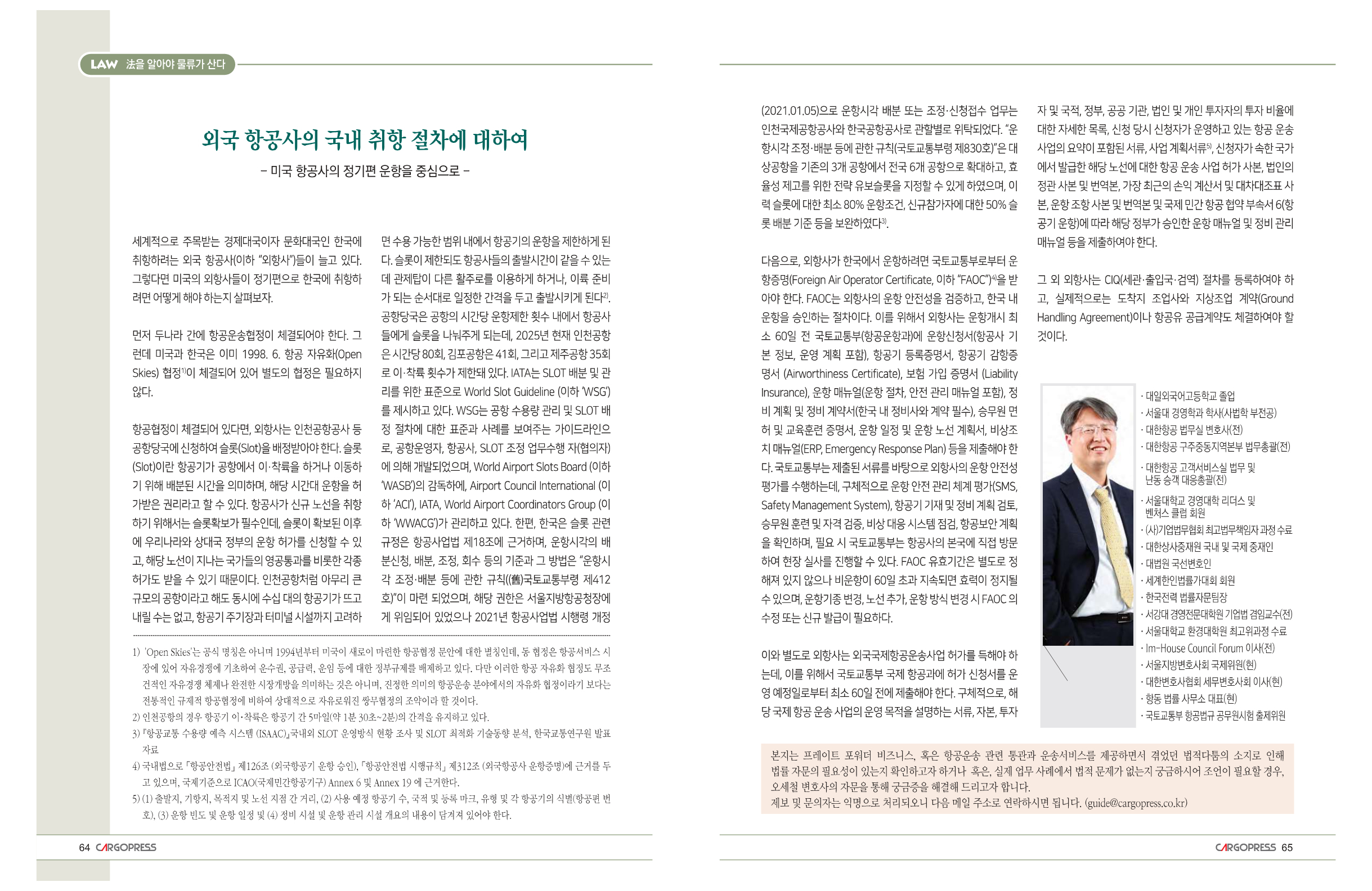 세계적으로 주목받는 경제대국이자 문화대국인 한국에 취항하려는 외국 항공사(이하 “외항사”)들이 늘고 있다.
