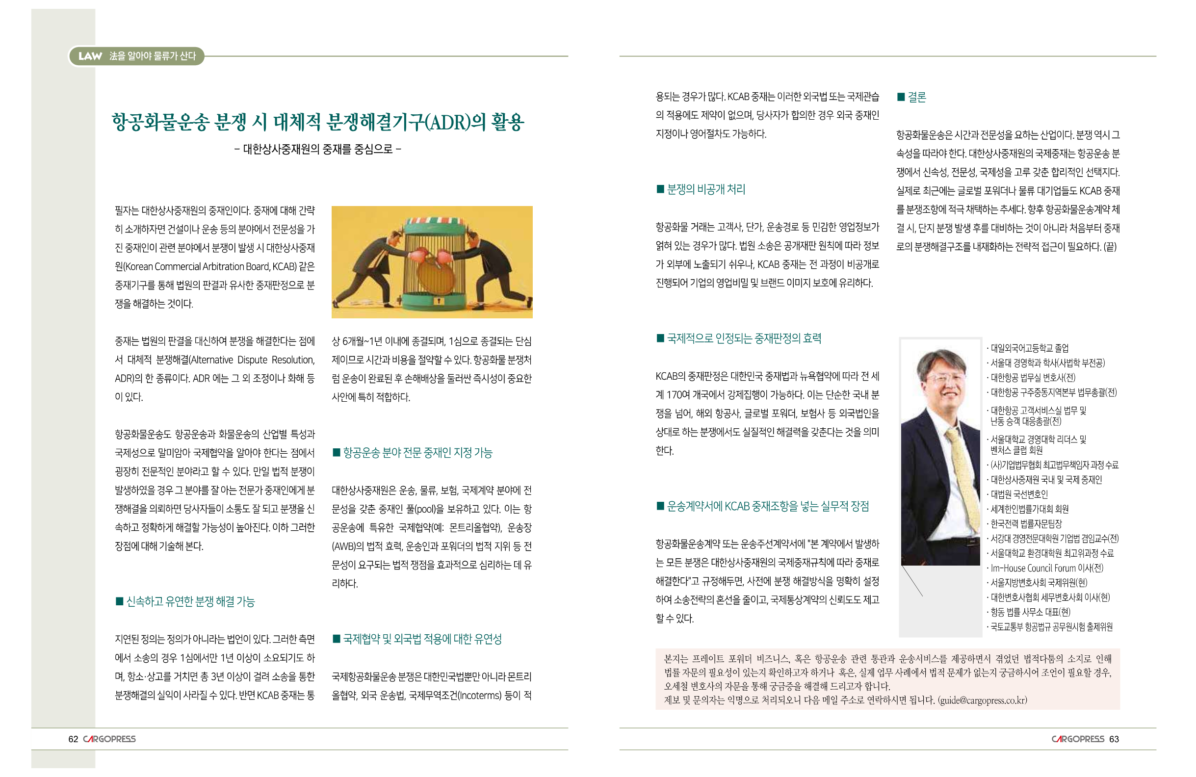 본 기고문에서는 대한상사중재원 중재인이 직접 실무 경험을 바탕으로, 분쟁해결에서 국제중재가 갖는 핵심적 장점들을 상세히 분석하고, 항공화물 운송계약 체결 시 고려해야 할 전략적 접근법을 필수정보로 제시합니다.