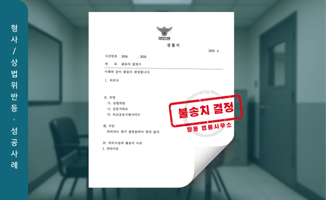 ‘혐의없음(증거불충분)’ 불송치 결정을 이끌어낸 성공사례를 소개합니다.